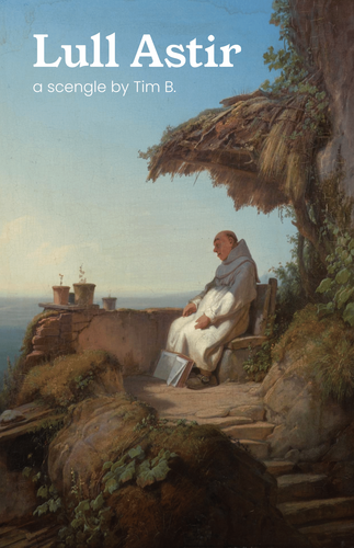 Lull Astir is a scengle: a kind of scenario for collaborative storytelling. The word "scengle" is a portmanteau of "scenario" and "Chris Engle," who invented this style of game under the more unwieldy name "social matrix games."